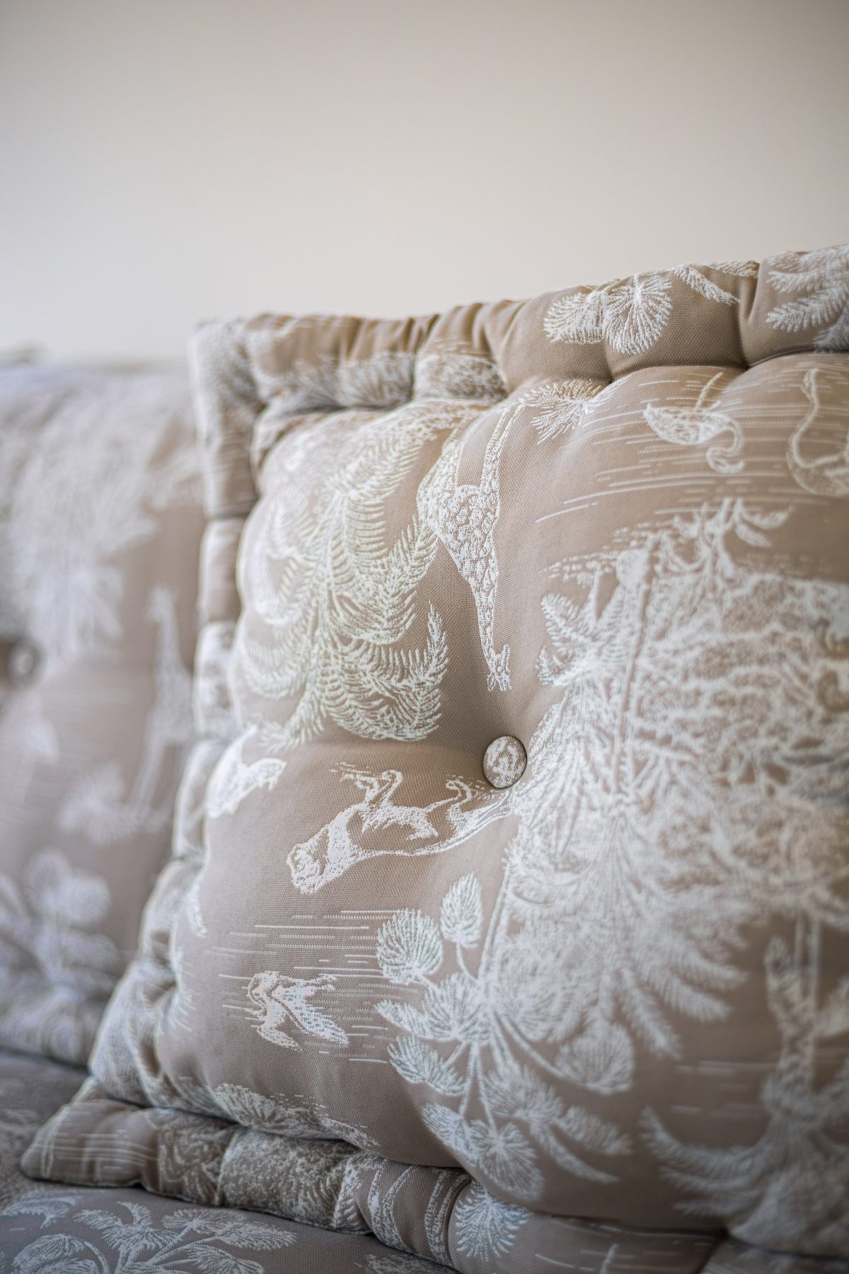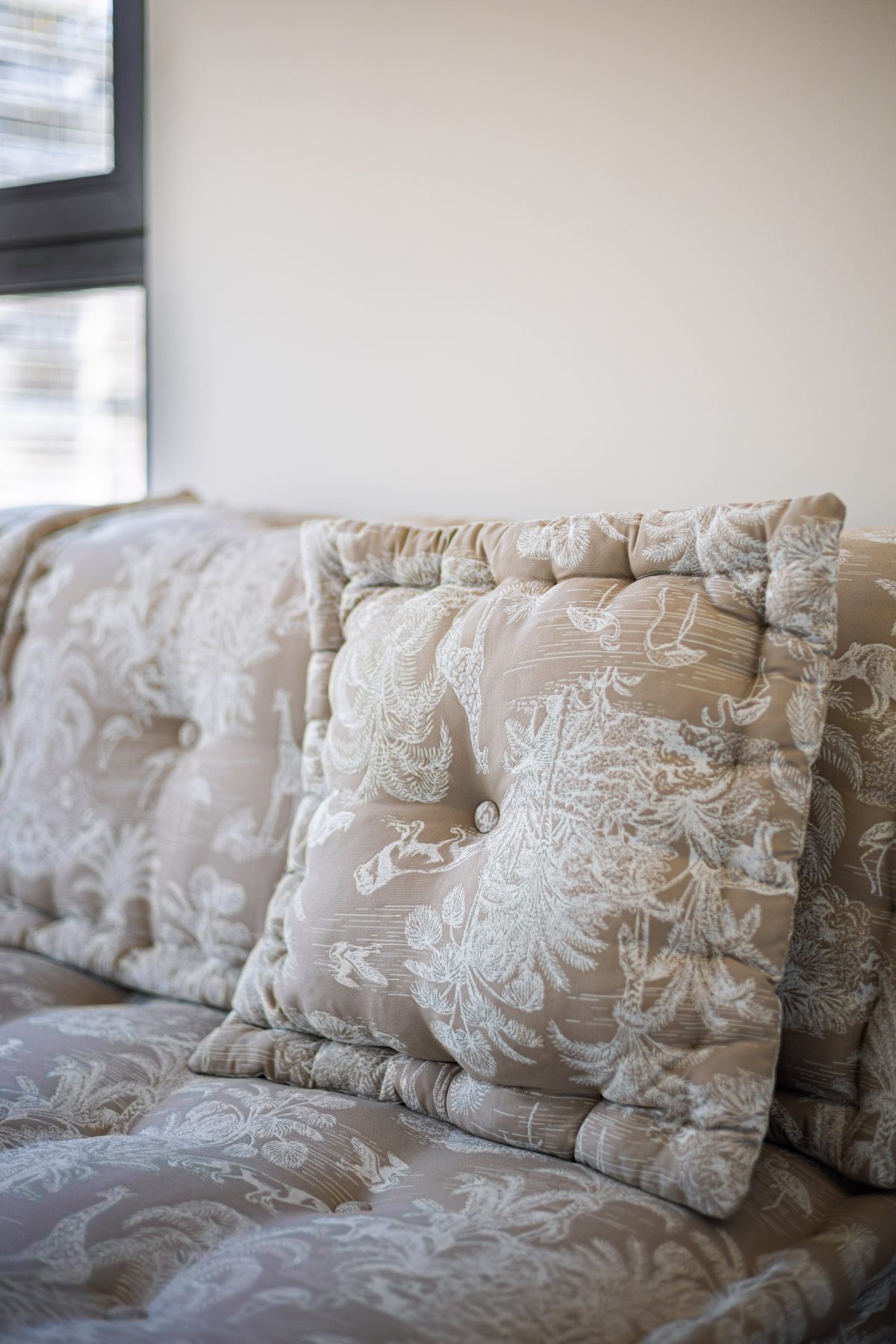 NOCCASA’nın yeni koleksiyonunda yer alan dokuma kumaşlar, bu alanda tasarımın ana karakterini oluşturuyor. Doğal tonlardaki oturma elemanları, mekâna yalın bir zarafet kazandırırken; yumuşak dokuları sayesinde kullanıcıya konfor ve huzur hissi sunuyor. Desenlerin sade bir dilde kurgulanması, alanın dingin atmosferini güçlendiriyor.
