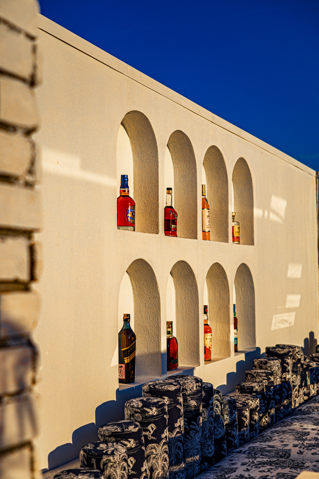 Modüler puflar ve sabit oturumlar, mekânın akışını destekleyecek şekilde konumlandırıldı. Desenlerin ritmik tekrarları, alan boyunca sakin ama karakterli bir atmosfer yarattı. NOCCASA’nın desen odaklı tasarım anlayışı, TOLA Terace’in yalın mimarisiyle dengeli bir birliktelik kurdu.