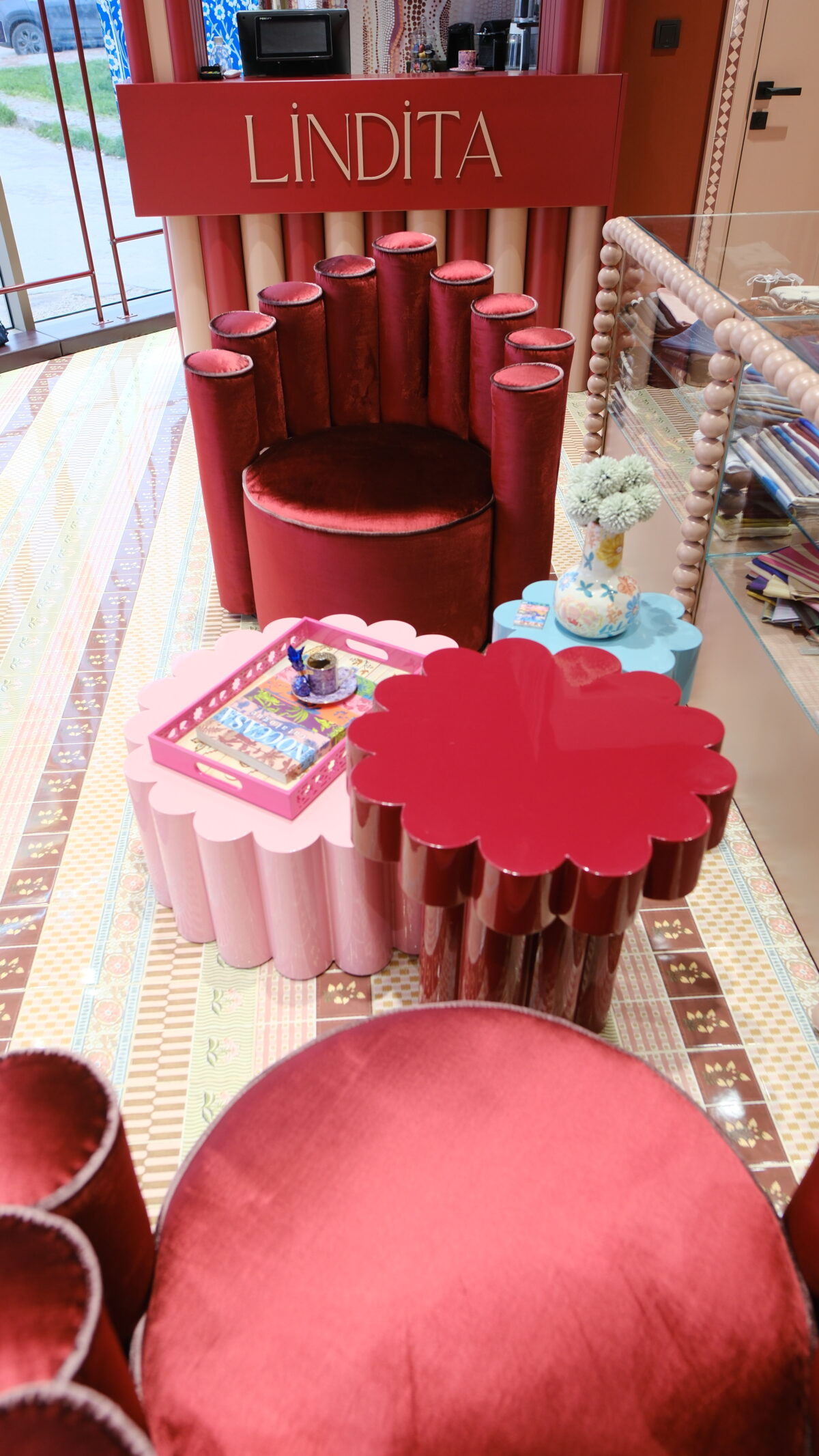 Cesur renk paleti, yumuşak formlar ve güçlü sahne etkisiyle kurgulanan alan; Lindita’nın enerjisini birebir yansıtan karakter sahibi bir deneyim alanına dönüştürülmüştür.